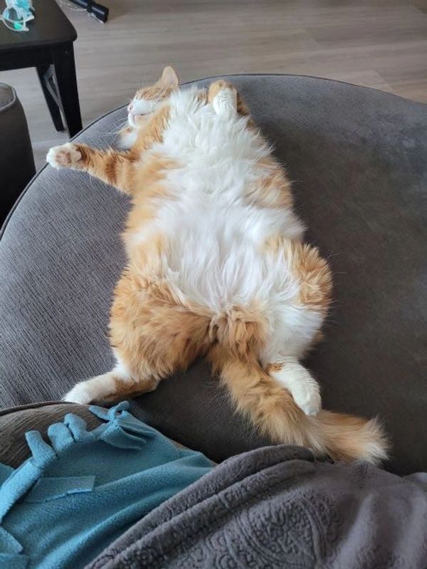 Belly Up is his favorite pastime. This is a part of his exercise to express his cuteness and to reverse the gravitational pull of his belly. However, this is not an invitation for you to stroke his belly for mutual comfort that you presume it would give. It is rather a way to teach you the importance of protecting and respecting personal boundaries. This also teaches you to crystalize your reality by challenging your presumptions. He will gently teach you the right level of force and speed to stroke him by guiding your hand with his claws and teeth. His teaching style is by mirroring your behaviours and reflecting on your learning style, whether you learn better from encouragement or pain. He generously gives you the opportunities to practice this type of life lessons to assure that you master them without imposing.