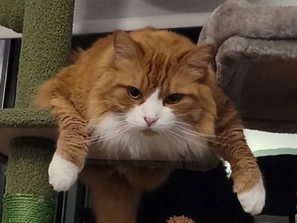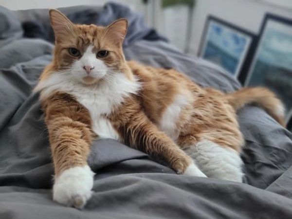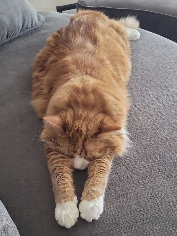 Supposed to be a Norwegian Forrest Cat according to Google photo search. Born in late 2021. The exact birthday is not known. The principle of “Happy Go Lucky” has been working for him in his life so far. Not afraid to show his desire to be petted to everyone he meets but being needy or begging is not his style. His charms are the incongruence of his voluptuous looks and the high pitched tone of his voice of a kitten; the sweetness of his unabashed infantile demands to fulfill his physical desires; and the velvety fur that is so soft and silky in texture like a fine aromatic chocolate mousse. He is aware of his slight overweightedness but does not consider it his problem, rather he is confident that it is his uniqueness and attractiveness like Miss Piggy.